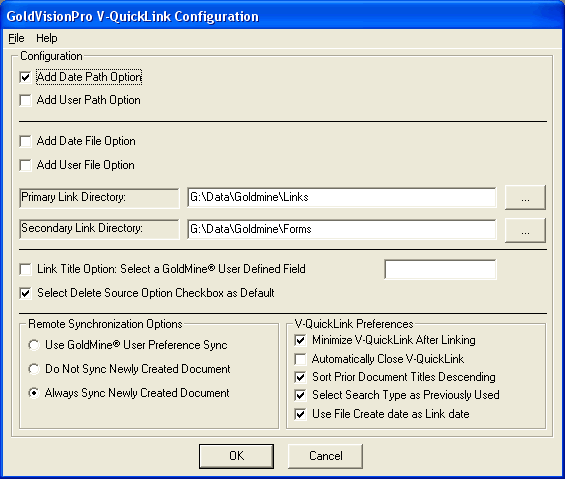 Add User Path Option - When this checkbox is selected, the GoldMine® User ID is added in the path name. (Unchecked by default)