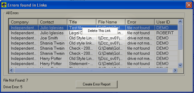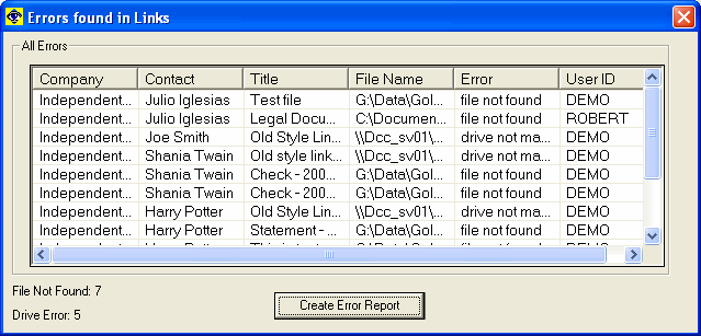 When there are errors found in the Linked Documents Database, they will be displayed in this screen.